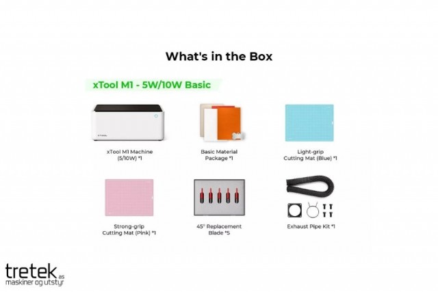 Laser og knivkutter i en pakke. Med denne kan du både gravere og kutte i diverse materialer med laser, samt kutte i tynnere materialer som folie med knivblad. En stasjonær maskin som er bemerkelsesverdig sikker og enkel å bruke. Enten for håndverkeren, nerden, hjemmebrukeren, amatøren eller profesjonelle, kan xTool M1 hjelpe deg med å lage mer enn du forestiller deg.