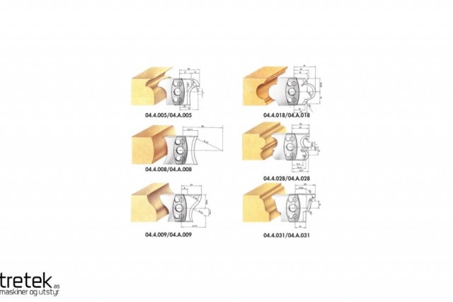 Kassettsett: 40 mm universalt kutterhode med gjæring + 6 profil stål/bakstykke